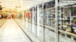 Blurry background low angle view transparent fridge with frozen food section at grocery storeBy Admin / February 24, 2020
