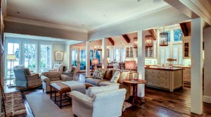 Large open concept home interior with living room, kitchen, and