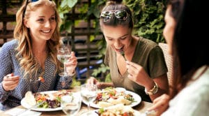 Meeting of girls at the fashion restaurant