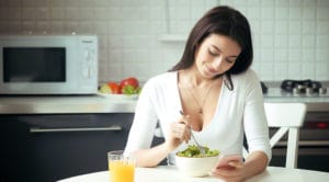 Portrait of an attractive woman having healthy lunch