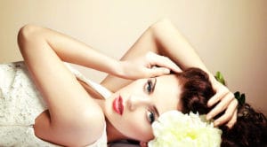 Portrait of beautiful sensual woman with elegant hairstyle. Per